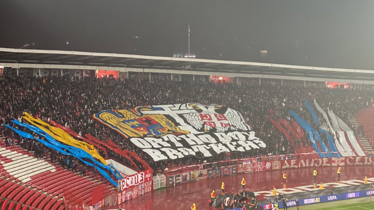 Galerie foto: Fanii sârbi le-au mulțumit românilor după scandalurile cu Kosovo și Bosnia: ”Frați ortodocși”. Suporterii FCSB au răspuns prin scandări