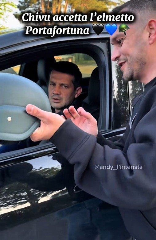 Galerie foto: Gest surprinzător pentru Cristi Chivu! Un suporter i-a oferit o cască norocoasă: ”Un simbol al muncii pe care ați depus-o pentru Inter!”