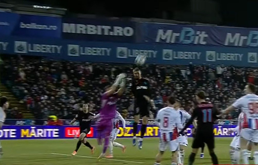 Galerie foto: ”N-am văzut în viața mea așa ceva!”. S-a crucit după ce a revăzut golul marcat de Bîrligea cu capul, din Oțelul-FCSB 1-4