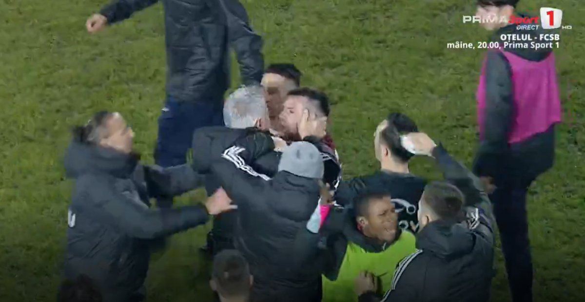 Galerie foto: Scene absolut șocante: Bergodi a sărit să îl bată pe Cordea, apoi l-a luat de gât pe Muhar! Fanii au încercat să rupă gardul și să intre pe teren
